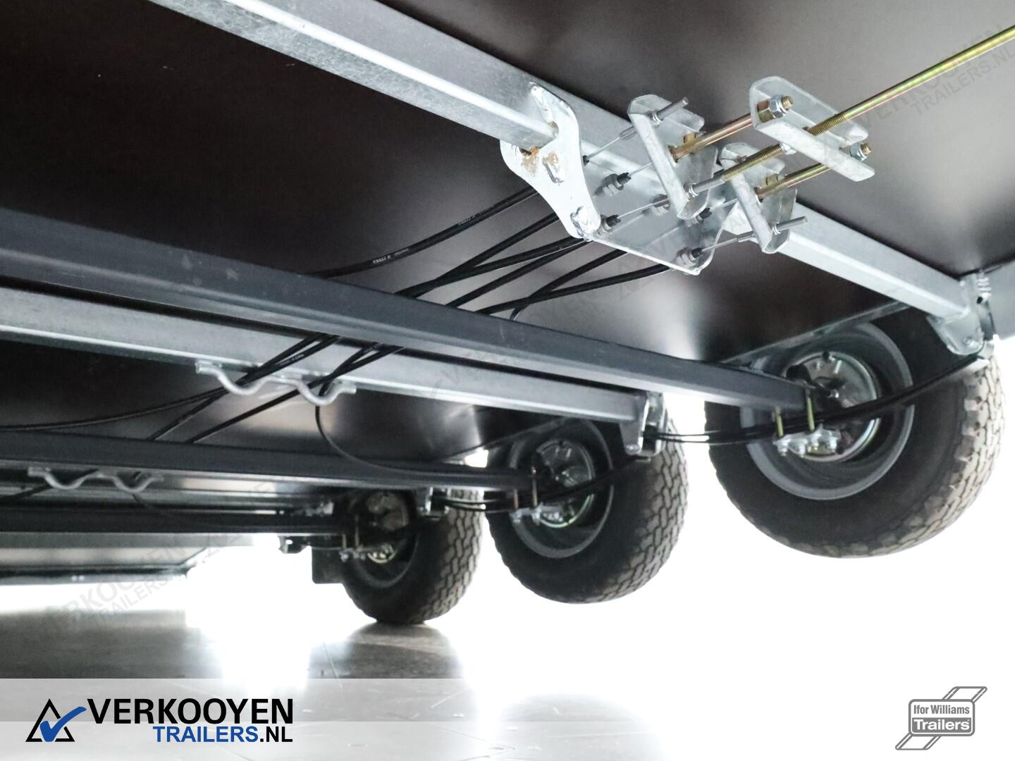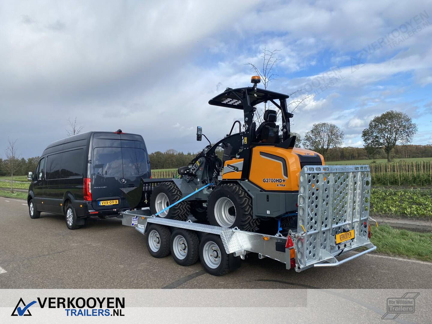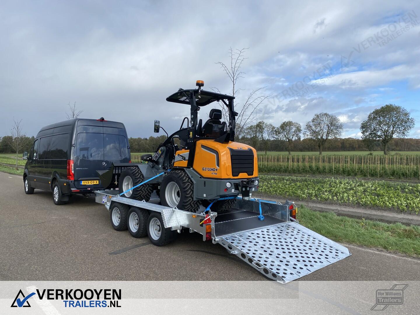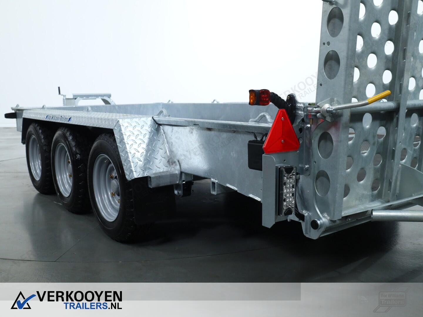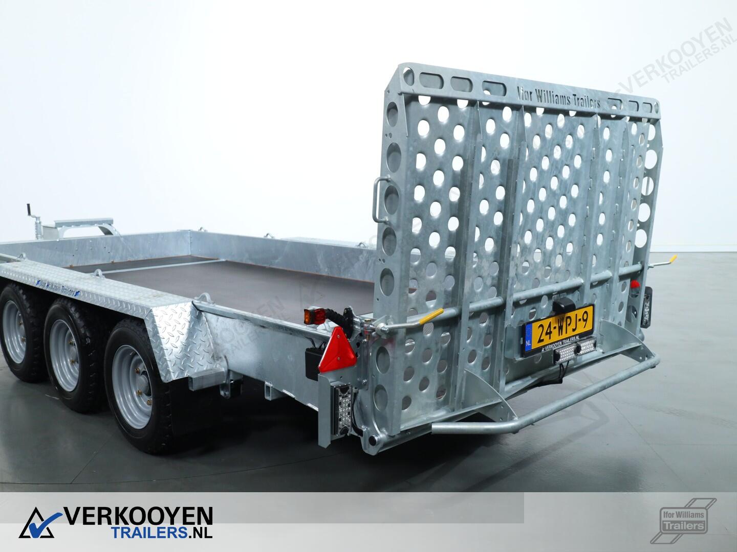 Ifor Williams GH146 machinetransporter. Deze Ifor Williams GH146 3-assige machinetransporter is uitgevoerd met bladgeveerde assen en heeft een maximaal draagvermogen van 3500 kg